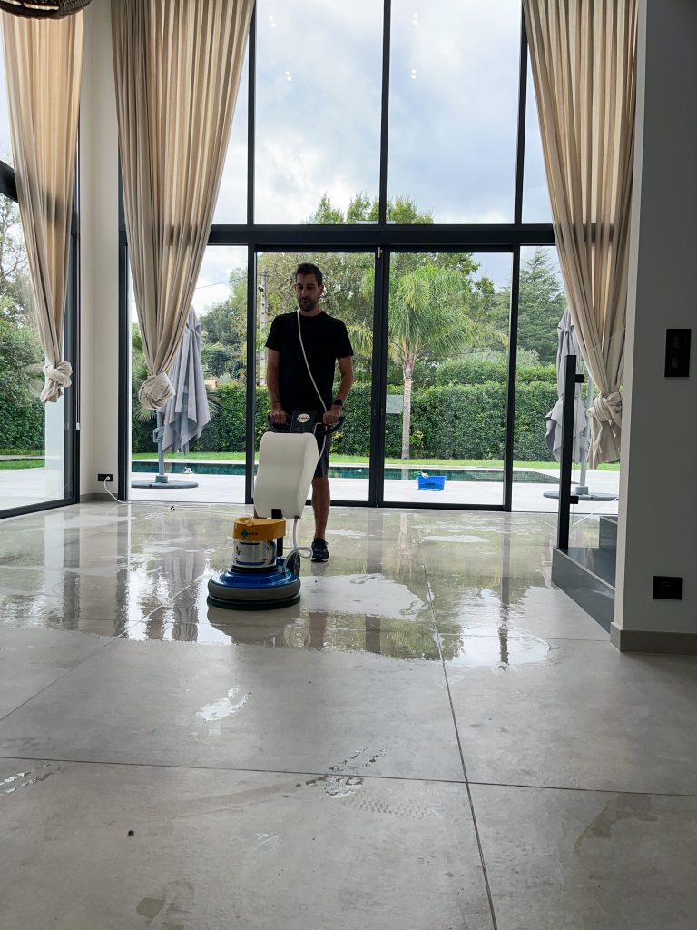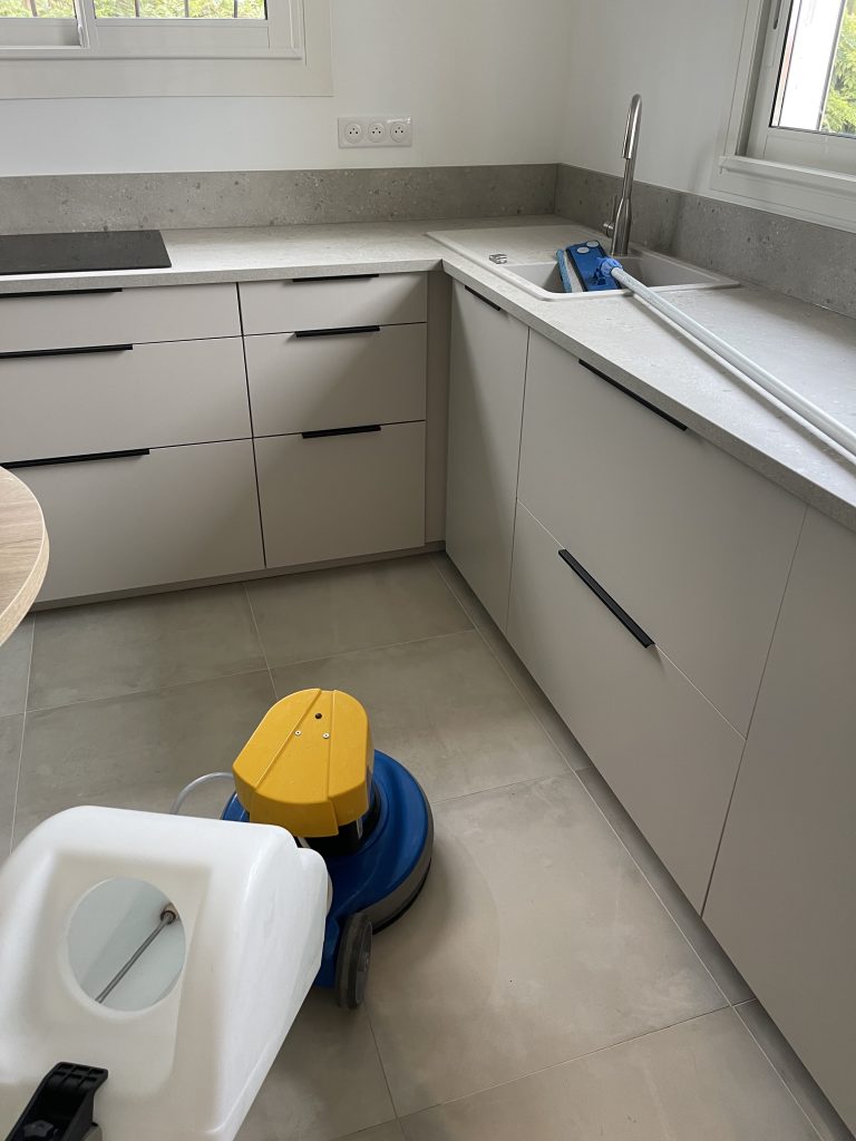 - Pour finir nous prêtons une attention particulière aux sols, en utilisant des techniques de nettoyage spécialisées à l’aide d’une monobrosse pour éliminer les taches tenaces et la laitance de ciment sur les carreaux.